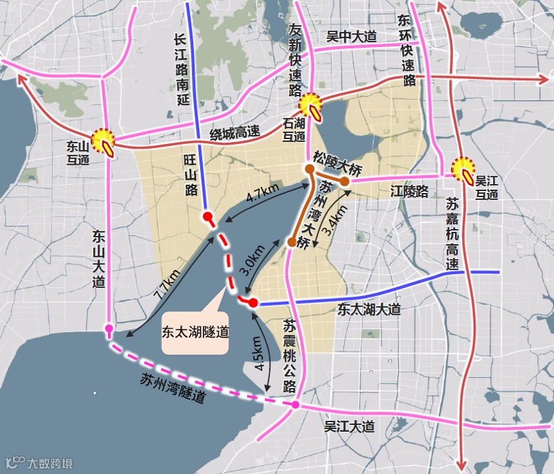 东太湖隧道和苏州湾隧道,加大吴中吴江与中心城区联系,目前正在有序推进。双隧并进,世界级湖区指日可待!