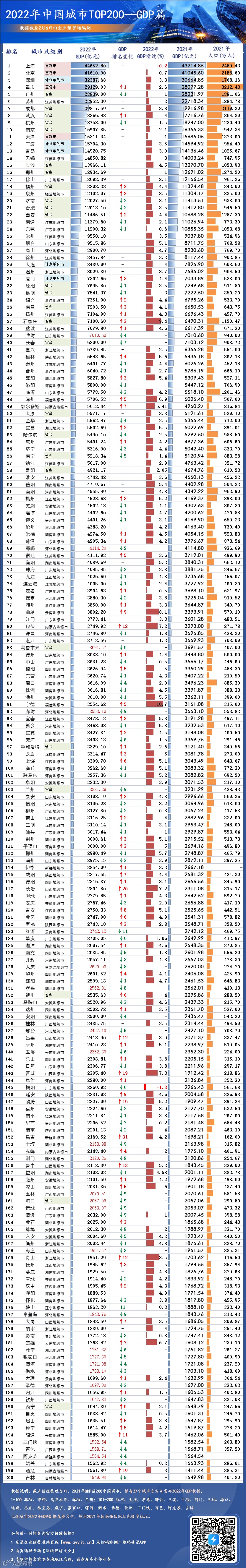 目前来看,2022年GDP城市排名变动较多,2022年GDP数据仍在披露中,我们一图来看详细数据。
