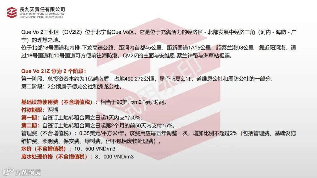 Que Vo 2工业区(QV2IZ)位于北宁省Que Vo区。它是位于充满活力的经济区 - 北部发展中经济三角(河内 - 海防 - 广宁)的理想之地。