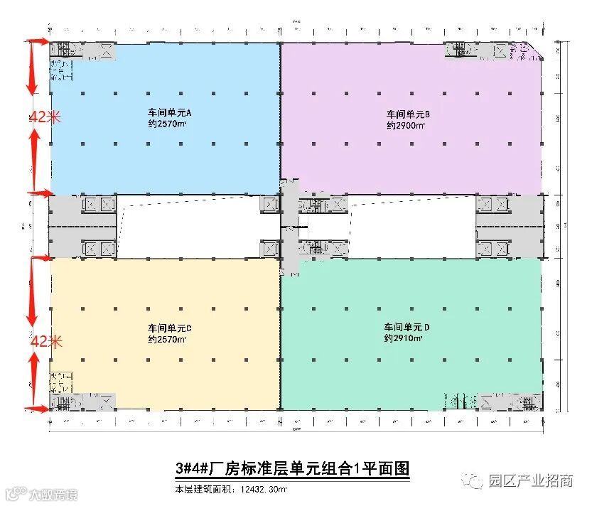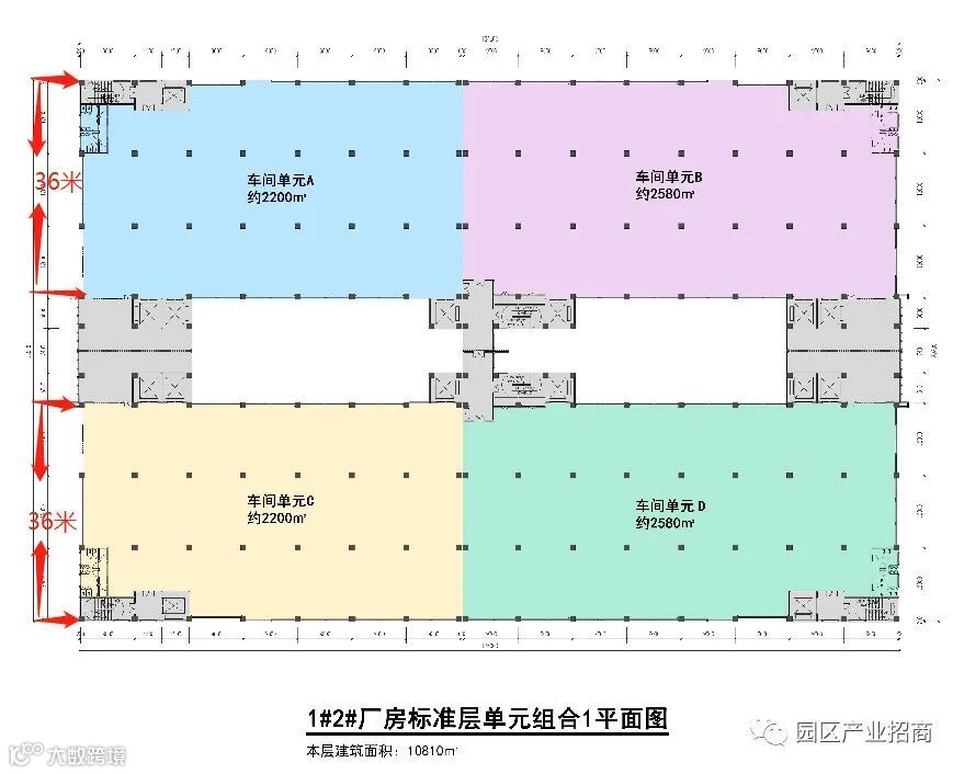 标准厂房跨距大有12米、14米、楼层高7米、7.8米、承重1.2吨,且厂房平面设计可分可合,适合小型、中型、大型不同规模的企业入驻生产,企业可以采用多种方式灵活组合租赁。