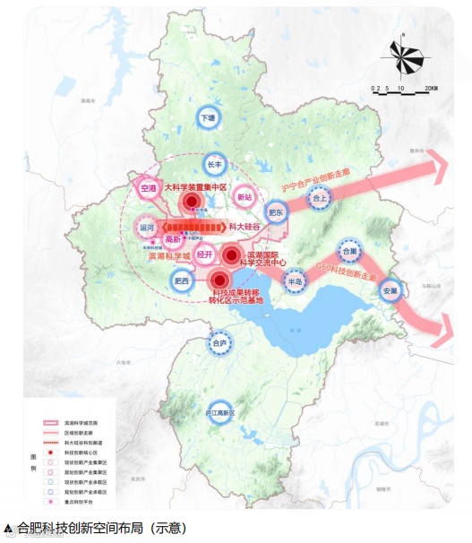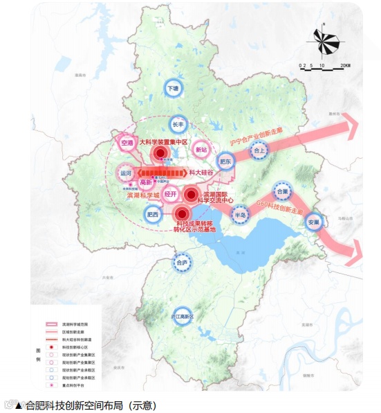 近期以“一心、一谷、一镇、三区”为重点,聚力建设合肥滨湖科学城。