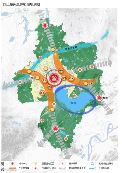 多极支撑:按照中等城市标准,提升巢湖城区、长丰县城、庐江县城等承载能力,打造市域三大副中心。