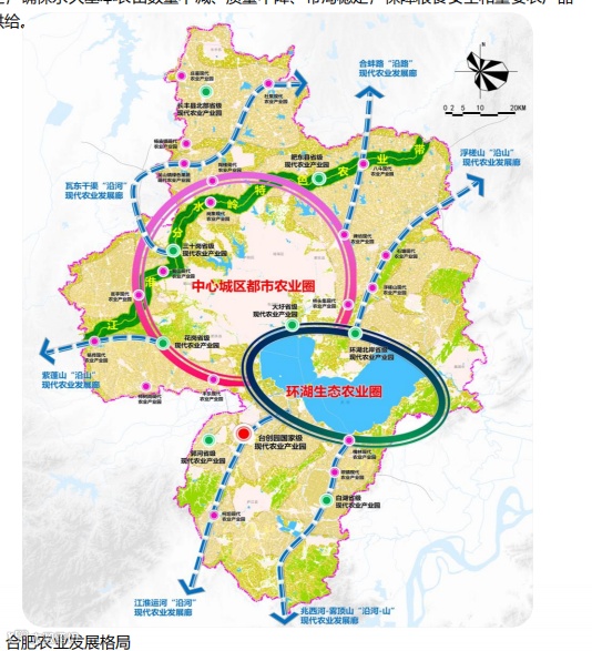 六廊:形成瓦东干渠、合蚌路、紫蓬山、浮槎山、江淮运河和兆西河六条现代农业产业廊;