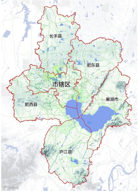 规划范围:合肥行政辖区,包括4个区、4个县、1个县级市,国土面积11445平方公里。