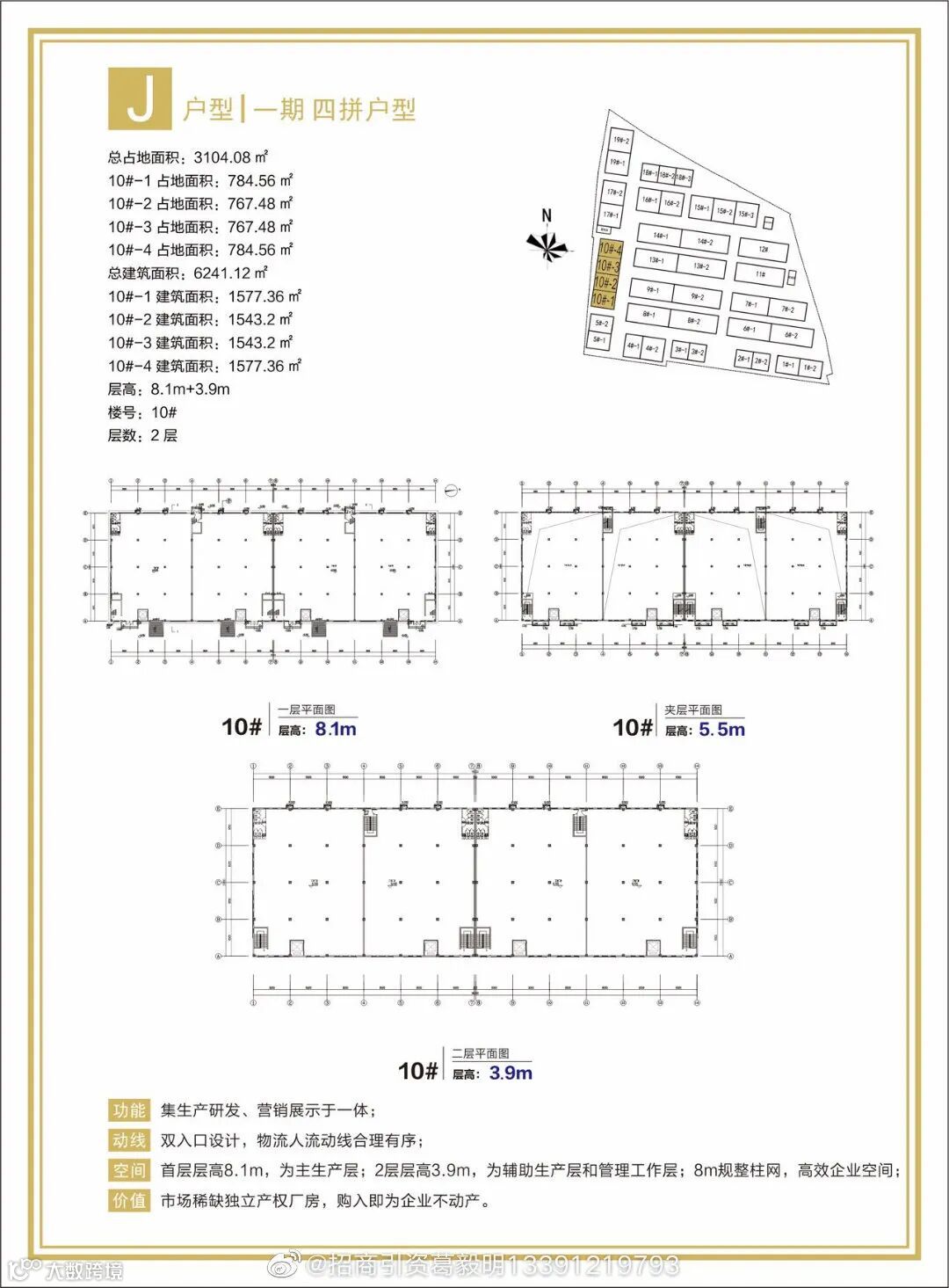 两层框架高标准厂房,首层层高8.1米,二层3.9米