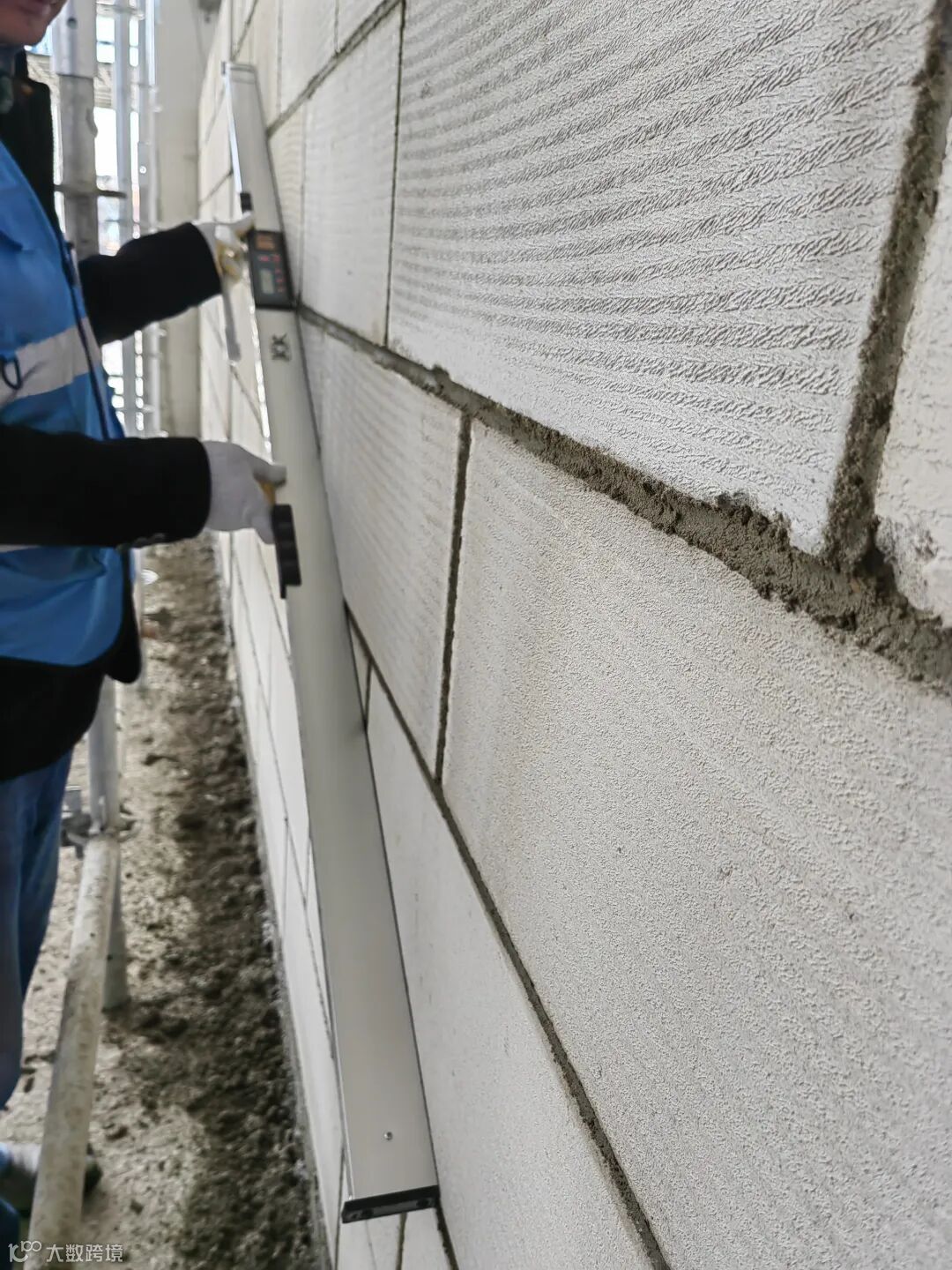 在施工手法方面,二次结构砌体的砂浆饱满良好,其中灰缝的控制均匀,采用圆钢勾缝的手法,平整度和观感在各方面都十分优质。