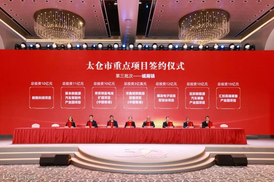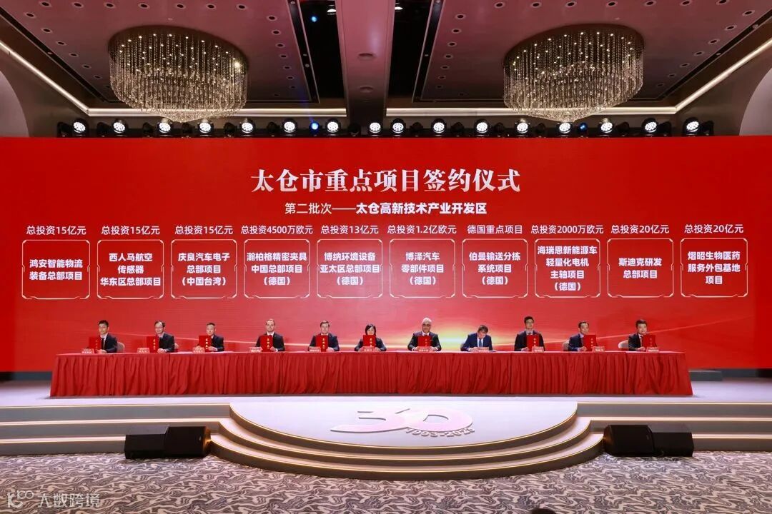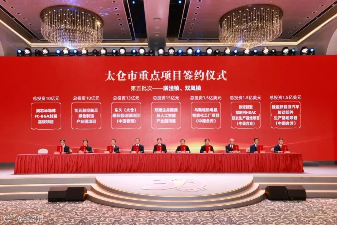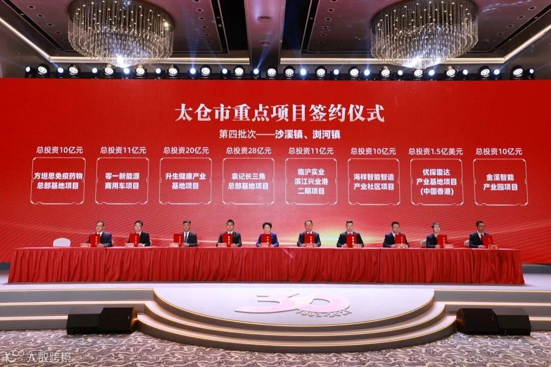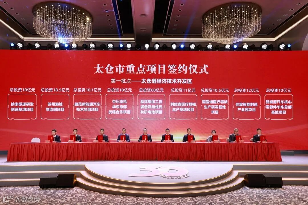 现场进行了重点项目签约仪式,45个单体投资超10亿元的重点项目签约落户太仓,所有项目合计总投资折合人民币达671.38亿元。