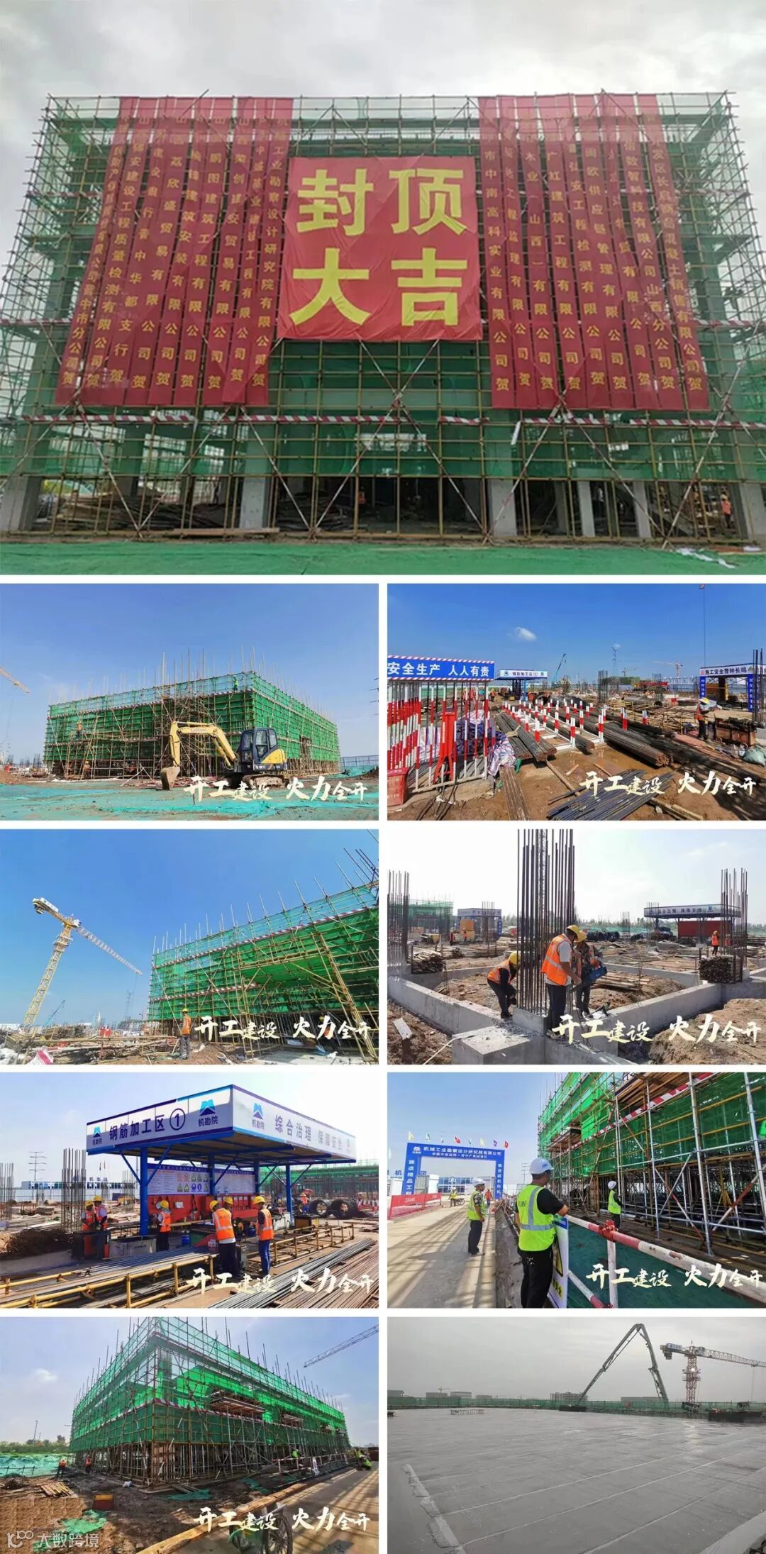 目前中南高科·涿州方方电子芯片产业园施工进度1#、2#、4#、6#楼政府零封顶,10#楼首层封顶,7#楼二层顶板钢筋绑扎完成,3#、5#、8#、9#楼桩基施工完成。