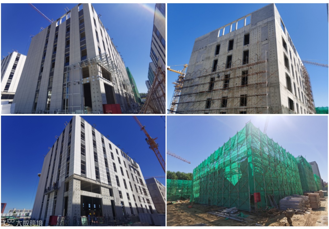 2#楼外立面上幕墙中,东侧、西侧已完成,北侧施工中;室内土建施工基本完成;4#、6#主体结构已封顶。