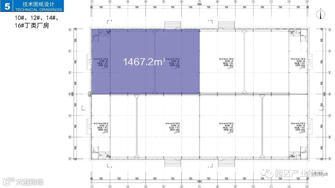 层高:单层钢架构厂房平面柱距为7.5m,建筑层高为10m,其中夹层6.5m ;
