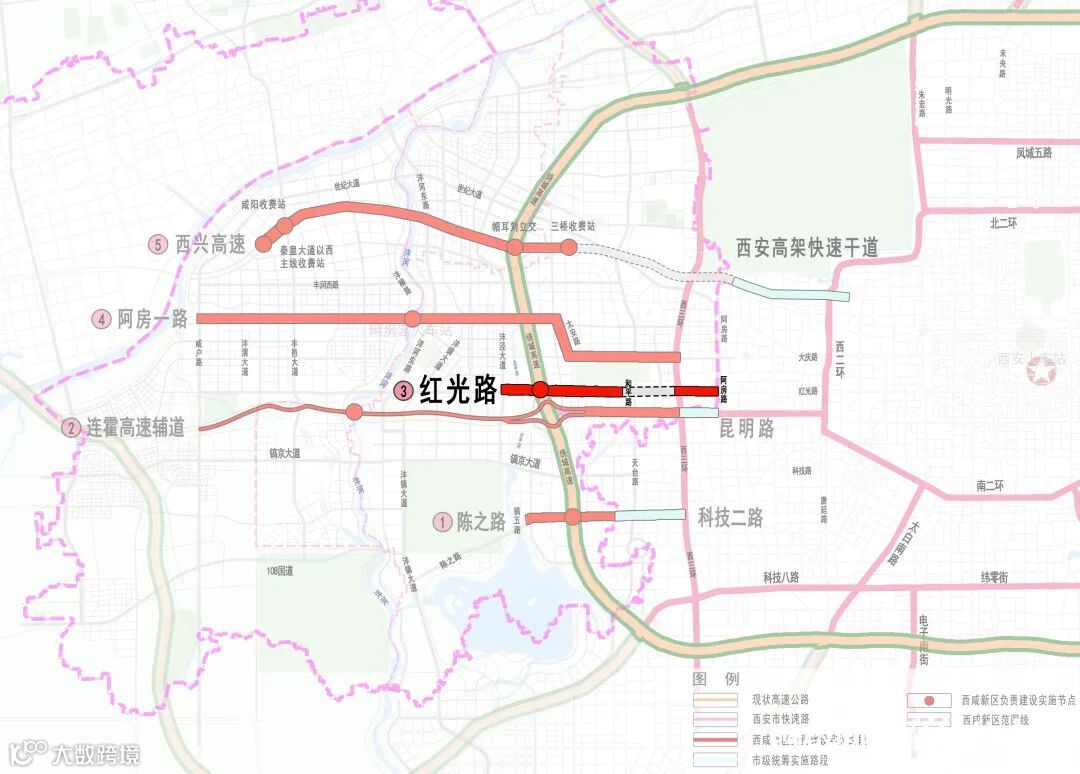 红光路提升改造项目,东起阿房路,西至沣泾大道,提升改造总长度4.8公里,为西安主城区与沣东新城核心区的重要通道。目前,下穿西户铁路综合管线已开始施工。