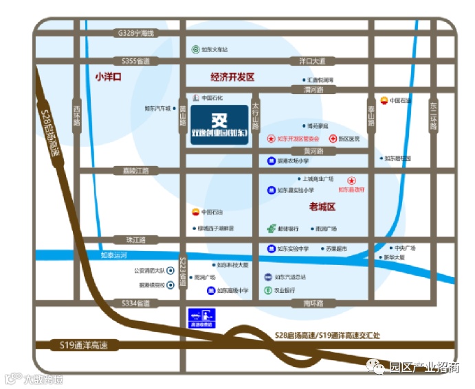 项目地处如东开发区政治、经济、文化中心,拥有开发区一站式全系政务配套和市政文化设施,如东经济开发区管委会位于园区东侧,直线距离仅300米。