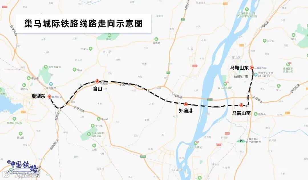 时间来到2022年10月1日,巢马城际铁路江北段正式开工建设,标志着巢马城际铁路长江南北两岸进入全线施工阶段。巢马城际铁路正线全长61公里,设计时速350公里,其中,江北段新建正线约47公里。线路起自合杭高铁巢湖东站,终至马鞍山东站,沿线设巢湖东、含山、郑蒲港、马鞍山南、马鞍山东5座车站。