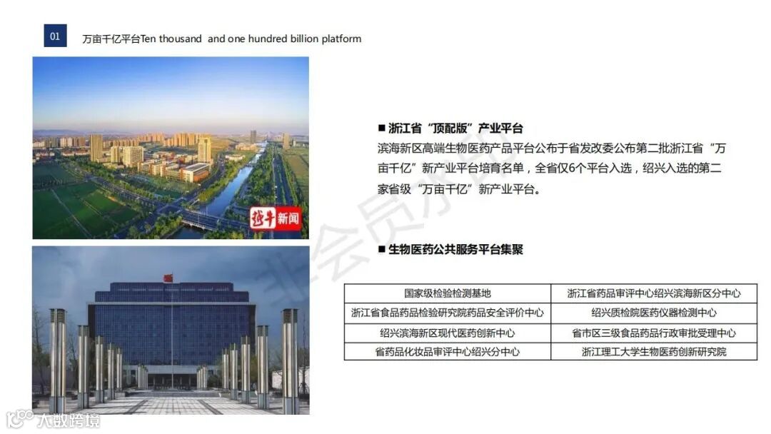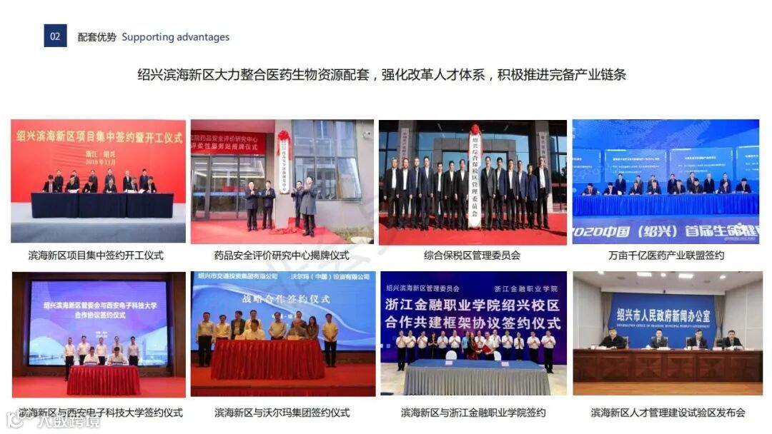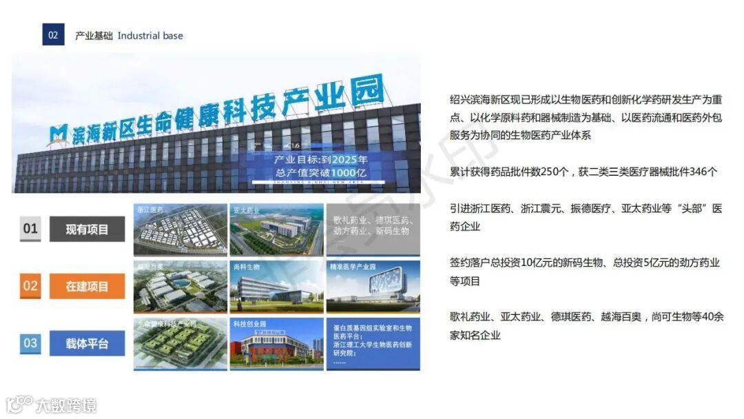 项目定位:园区依托绍兴滨海新区万亩千亿生物医药超级平台,按照产城融合、医药聚合、医养结合的产业定位,形成“政、产、学、研”一体化的发展模式,打造生物医药产业新高地。