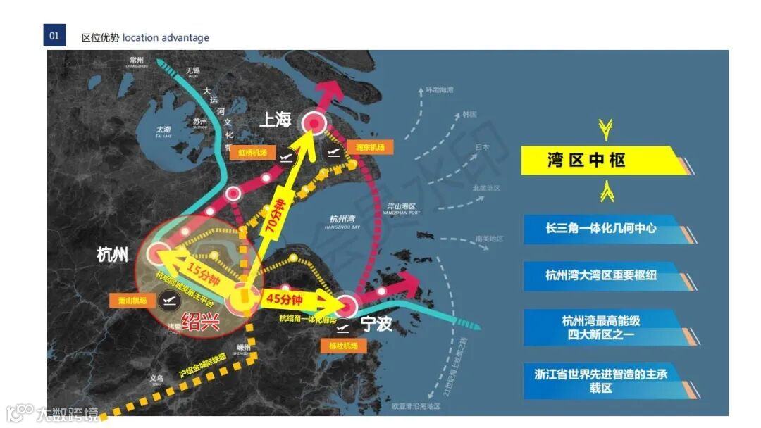 高铁:新规划绍兴滨海站,约20分钟至杭州,约30分钟至宁波市区,约1小时至上海市区,另外园区周边还设有绍兴北站,绍兴东站,余姚北站等高铁站;