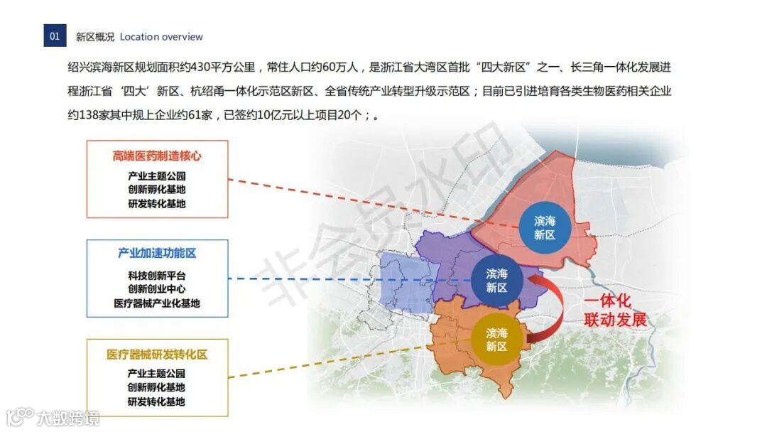 绍兴滨海新区是浙江省大湾区“四大区”之一,作为长三角南翼地理中心,同时也是绍兴市高端医药制造核心、产业加速功能区以及医疗器械研发转化区。具有“融杭、达甬、接沪”的显要区位特征,依托优越的地理优势,可承接杭州、上海等地的研发企业产业化转移,三到四年内形成全产业链生态圈。