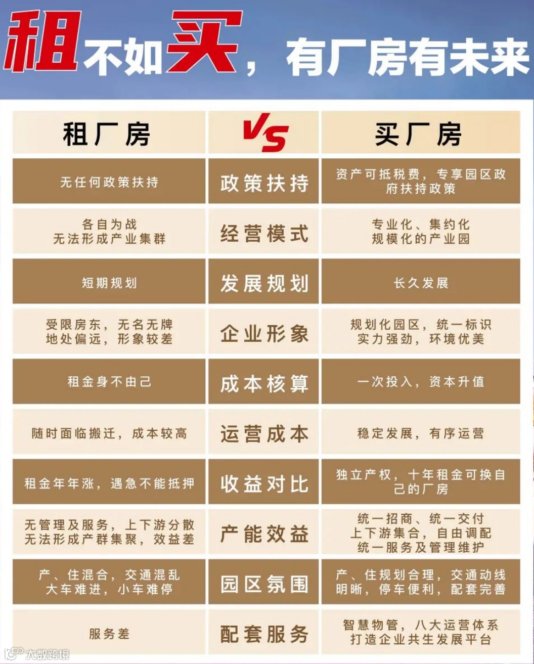 对众多需要扩大生产规模的企业主来说,捉襟见肘的土地资源与厂房成为企业发展的一道难题,落脚难、落地慢、落地贵、这些方面掣肘了企业的长足发展,那么对于企业到底是租赁厂房好还是通过购买厂房入驻产业园区比较好呢?