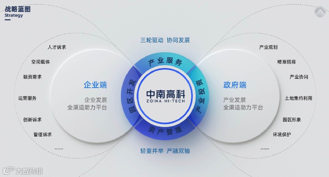 也由此,中南高科将战略蓝图定向企业端和政府端,面向企业做“企业发展全场景服务平台”,面向政府做“产业发展全渠道助力平台”。