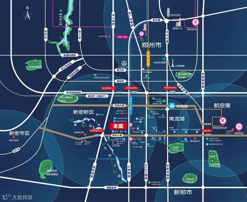 距离郑州东站直线距离28 公里;
