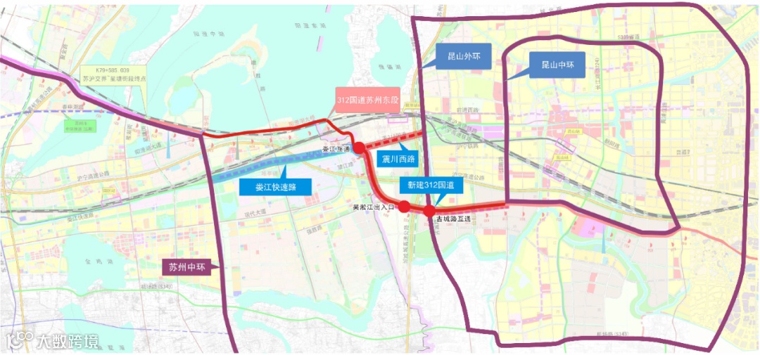 项目西起昆山界,东至昆山古城路,全长约3.7公里,主线双向六车道布置,按照快速路标准设计,取消现有红绿灯,在环城西路节点、新城路节点设置下穿隧道。同步改造新城路跨娄江大桥,缓解区域交通拥堵,便捷市民通行。