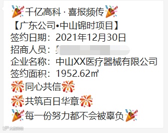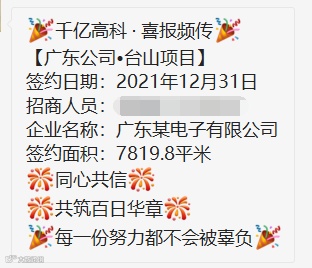 园区产业招商2021年最后一天标准厂房成交喜报(部份)