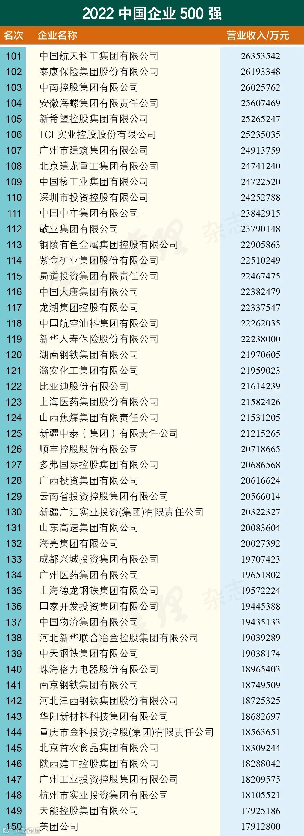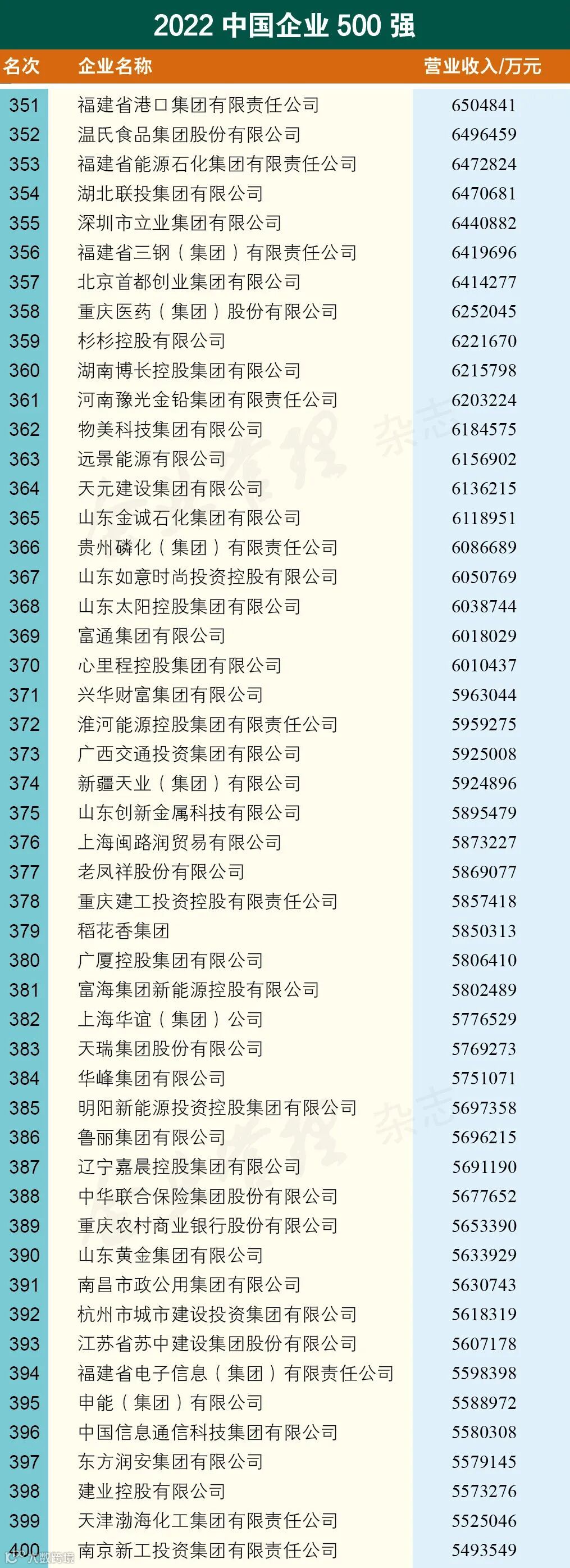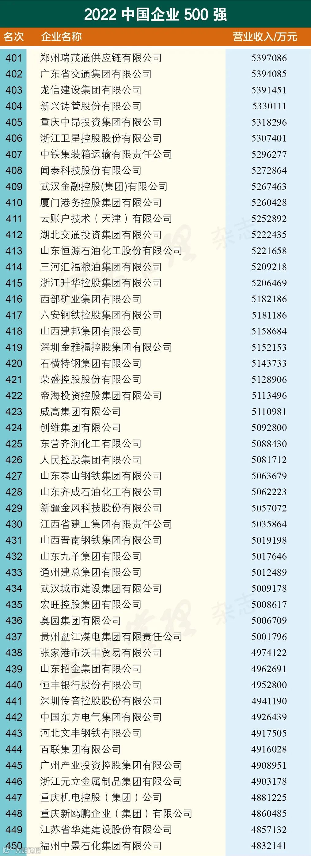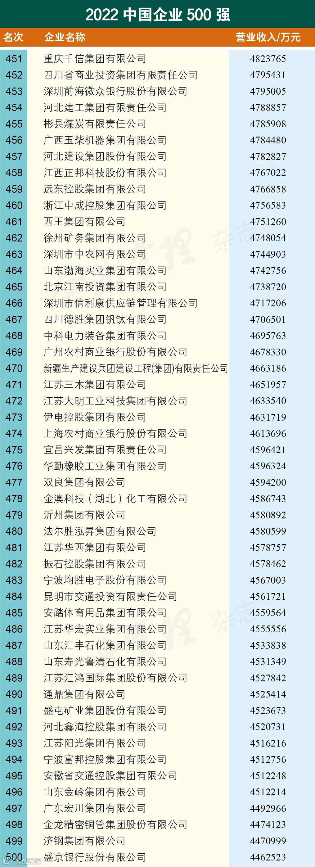 “2022中国企业500强”榜单由中国企业联合会、中国企业家协会发布,至今已连续发布21年,生动记录了我国大企业不断发展壮大的轨迹。