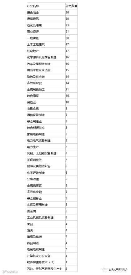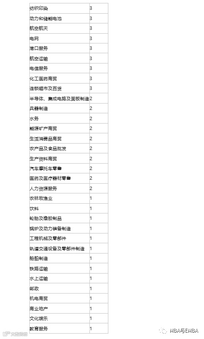 各行业入围公司数量