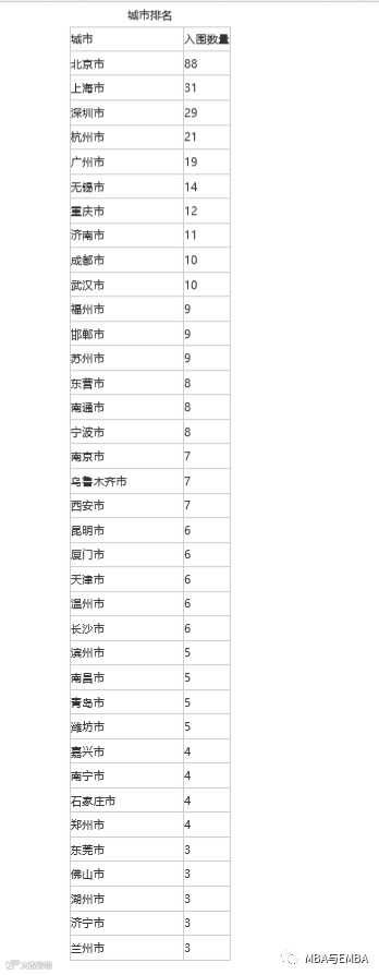 入围企业城市排名