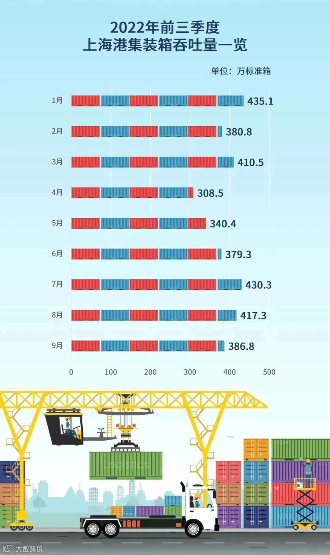 其中,9月,上海港完成集装箱吞吐量386.8万标准箱。9月8日,上海港集装箱日吞吐量首次突破16万标准箱,打破一年前创造的历史纪录。