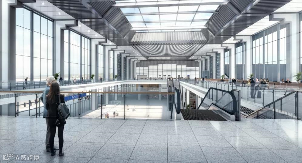 站房建筑从城市空间营造的角度出发,结合周边现代新徽派城市建筑风貌, 对站台雨棚、落客平台进行整体设计, 融合当地民居的屋顶、天井元素,形成恢弘大气、具有徽派建筑韵味的现代建筑群。站房建筑整体简洁舒展、清新典雅,体现出肥东积极向上、面向未来的城市活力。