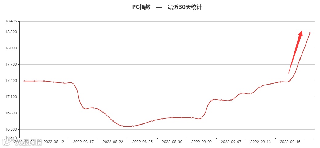 本周受到原料及供应减少双重利好推动,国内PC市场大幅跟进,继续刷新下半年最高记录。短线来看,市场心态继续受到以上因素支撑,看涨预期仍存,但伴随市场持续推涨,后市风险预期也随之加大,预计近期国内PC市场高位震荡运行,不排除进一步上推可能。