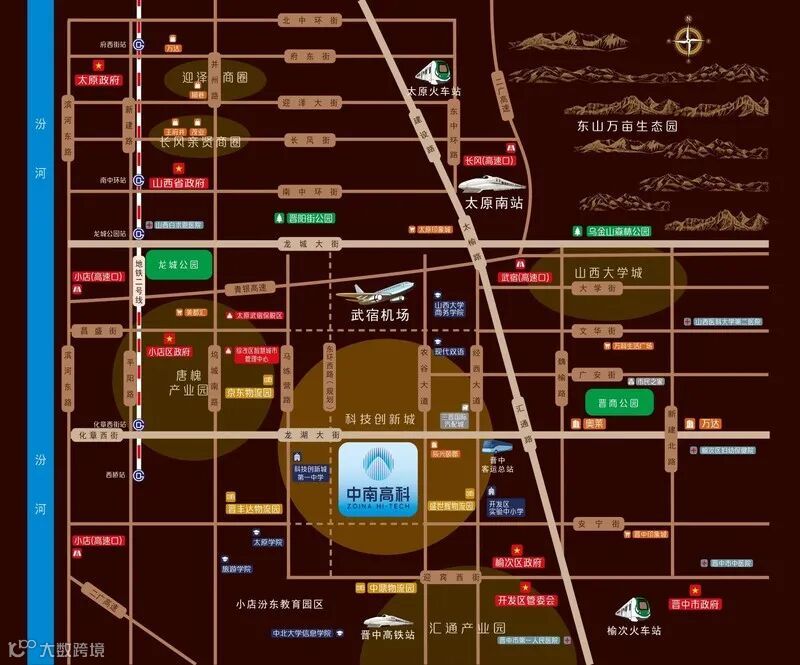 教育配套:8KM范围内齐聚1座大学城和1个教育园区——山西大学城、太原小店汾东教育园区,高校聚拢、师生聚集,人才资源集聚;