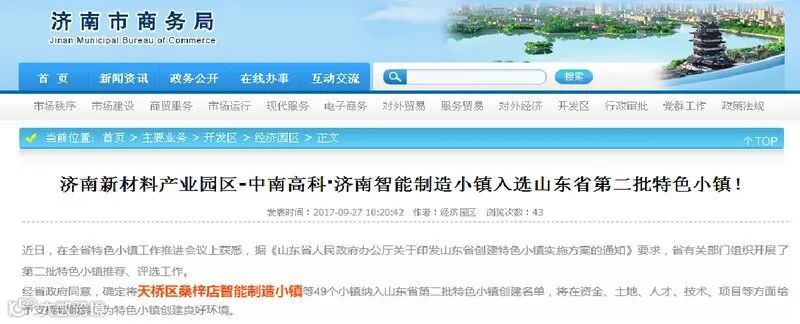 在北跨战略的发展下,中南高科济南智能制造小镇成为济南市重点发展项目,也成功入选山东省第二批特色小镇。