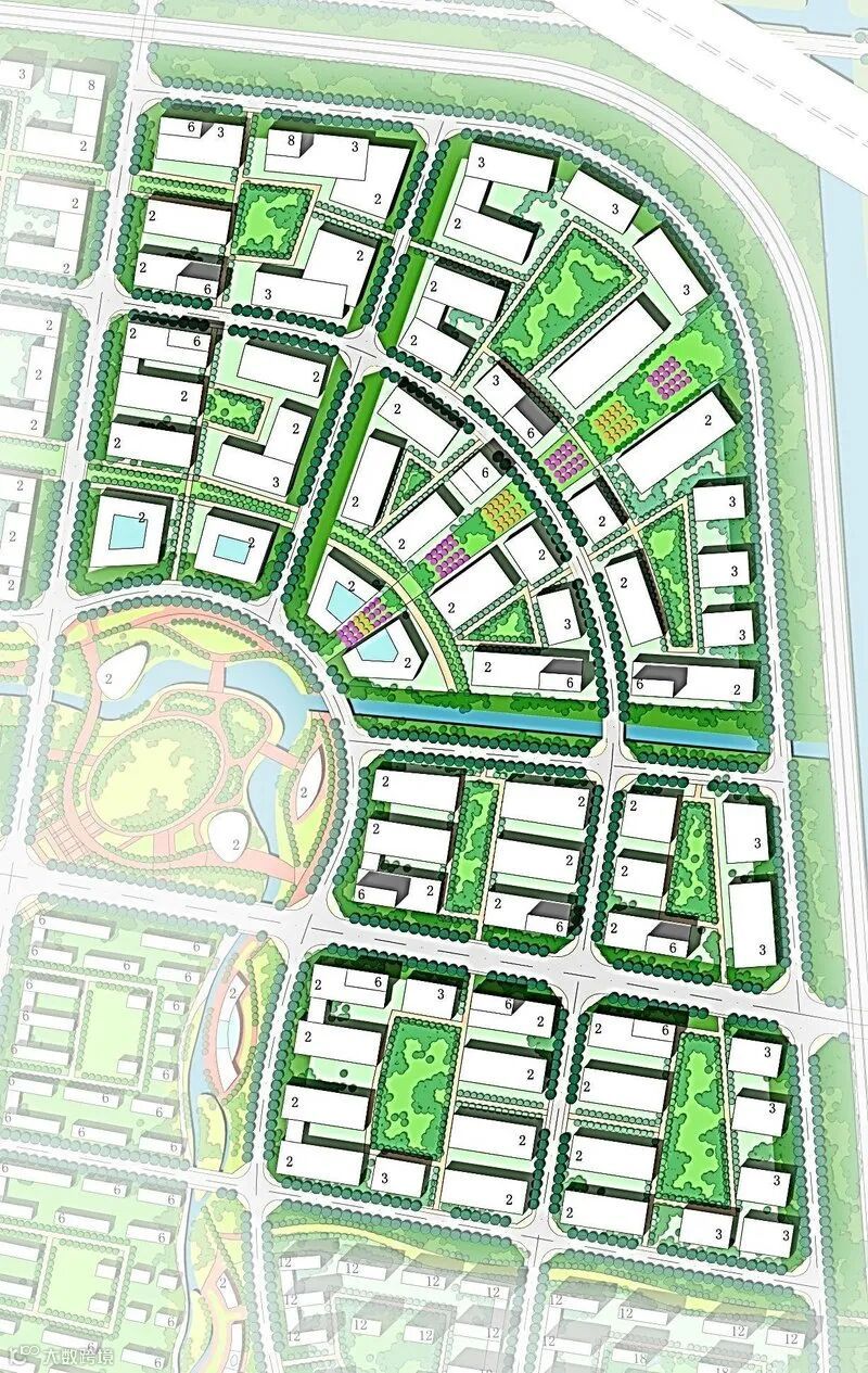 规划以相对独立的围合姿态形成基本的组团单元,组团单元围绕园区内部绿带布局,每个单元与绿化形成直接的联系,同时利用智慧轴安排文化娱乐及综合服务设施,良好的配套设施将为园区提供持续活力。