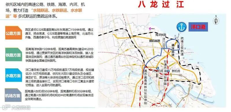 【交通】:园区紧邻G328国道距离如东东高速口15分钟车程。通过通洋、启扬高速、G328国道、S335省道等南接上海苏南、北连苏北齐鲁、西通扬泰宁马,构成便捷的高速路网