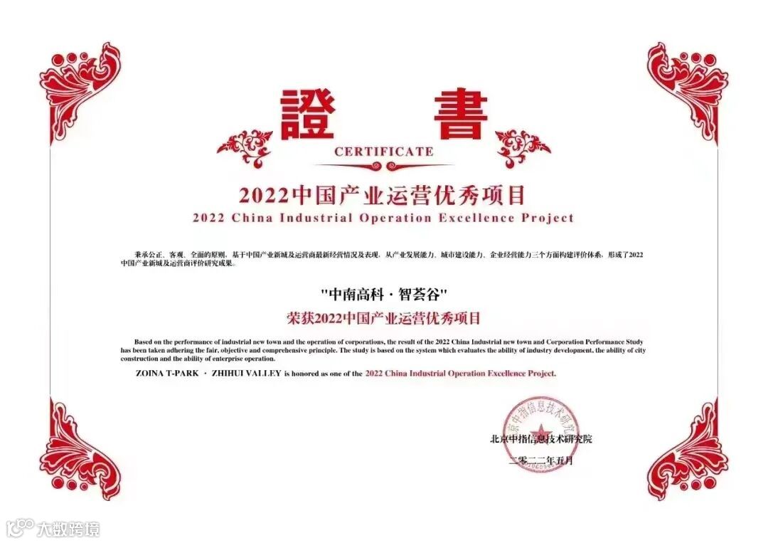 作为中南高科第三代园区的典型代表,中南高科·智荟谷于近日荣获中指研究院“2022中国产业运营优秀项目”,得到业内高度的认可和评价。