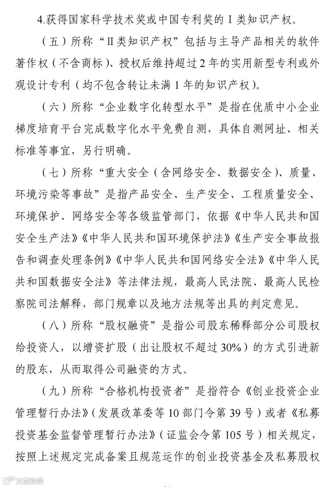 (九)所称“合格机构投资者”是指符合《创业投资企业 管理暂行办法》(发展改革委等 10 部门令第 39 号)或者《私募