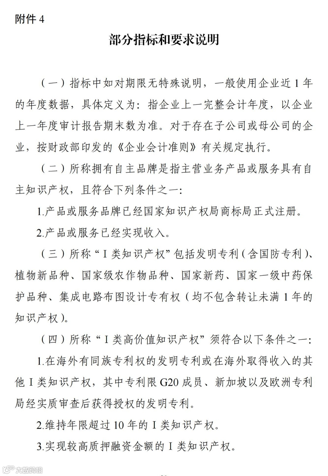 (四)所称“Ⅰ类高价值知识产权”须符合以下条件之一: