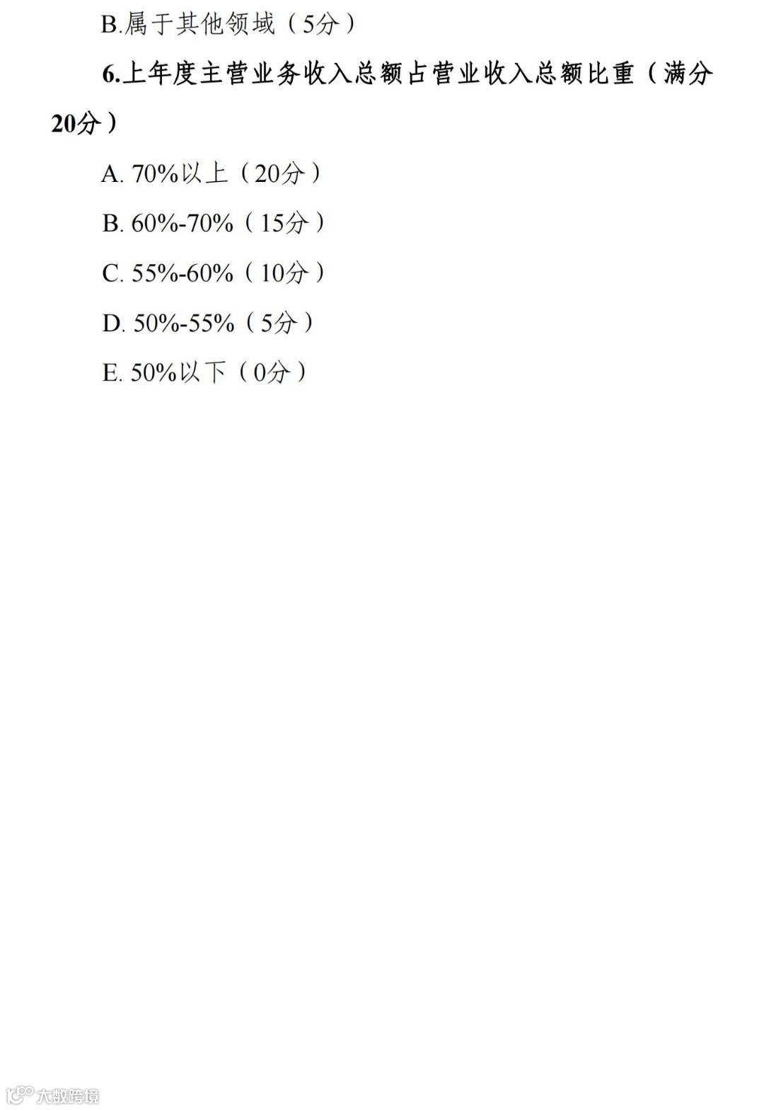6. 上年度主营业务收入总额占营业收入总额比重(满分
