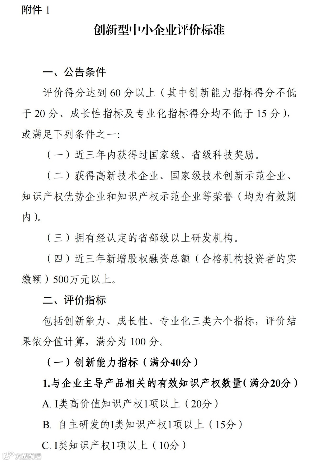 附件:1.创新型中小企业评价标准