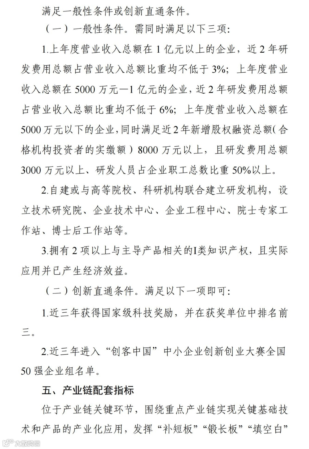 (二)创新直通条件。满足以下一项即可: