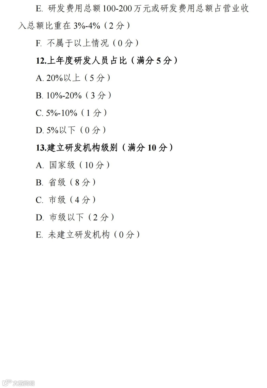 13. 建立研发机构级别(满分 10 分)
