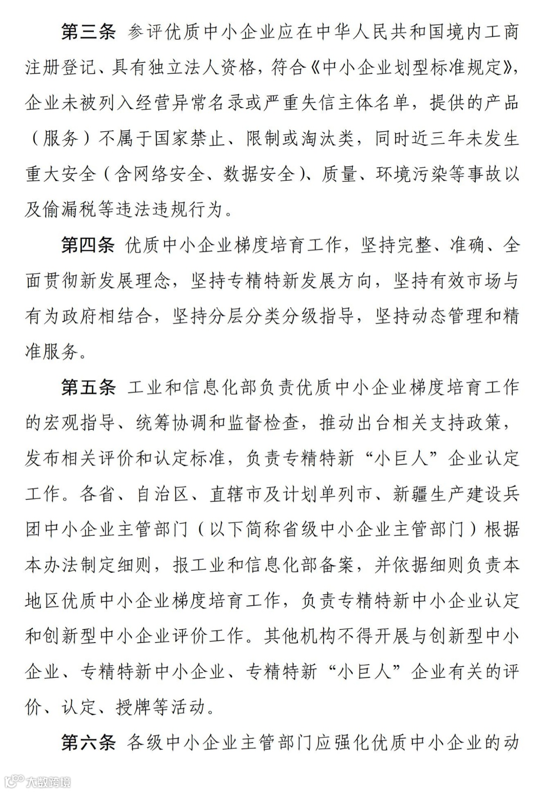 第六条 各级中小企业主管部门应强化优质中小企业的动