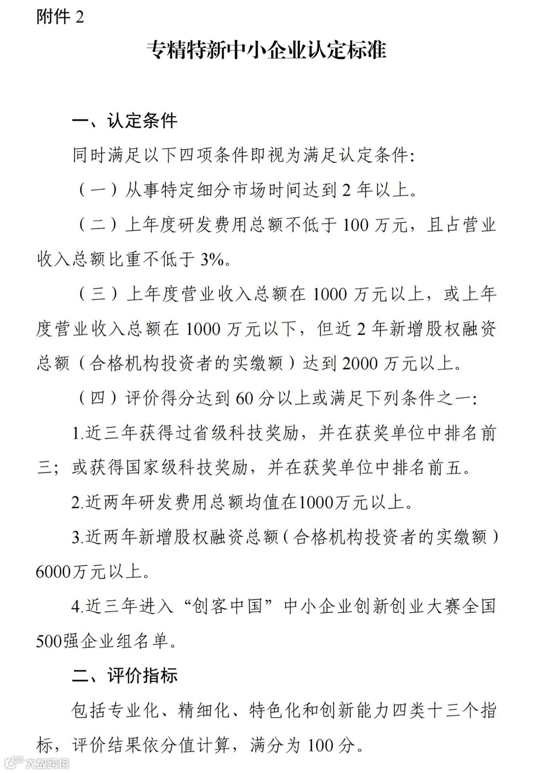 2. 专精特新中小企业认定标准