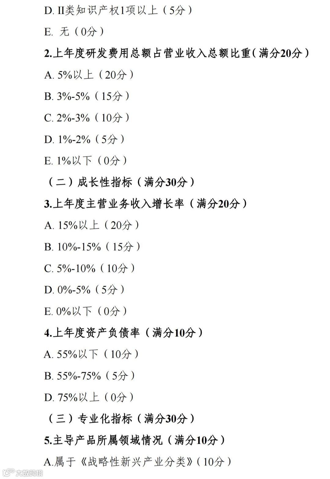 包括创新能力、成长性、专业化三类六个指标,评价结果依分值计算,满分为 100 分。
