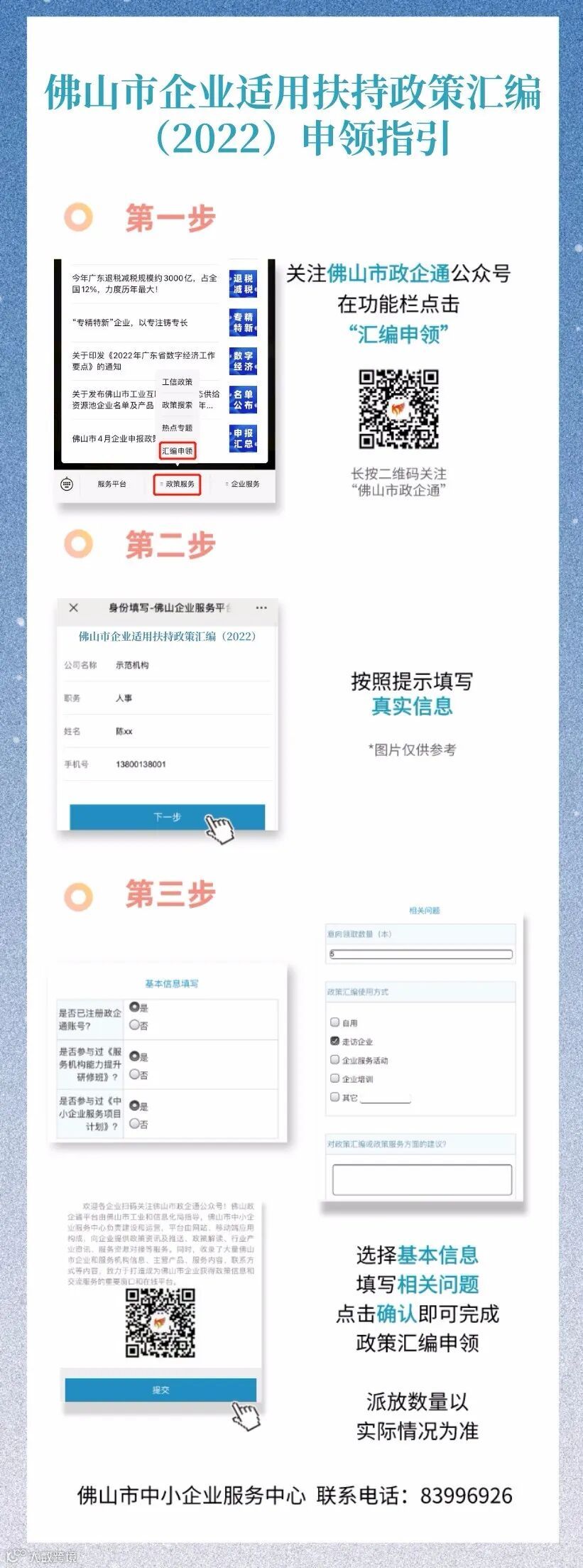 市工业和信息化局、市中小企业服务中心联合编制了《佛山市企业适用扶持政策汇编(2022)》,主要收录国家、省、市、区政府部门企业适用扶持政策,同时收集2022年佛山市计划出台的政策和亮点解读,供企业参考借鉴,有需要的企业和服务机构可以预约登记申领。