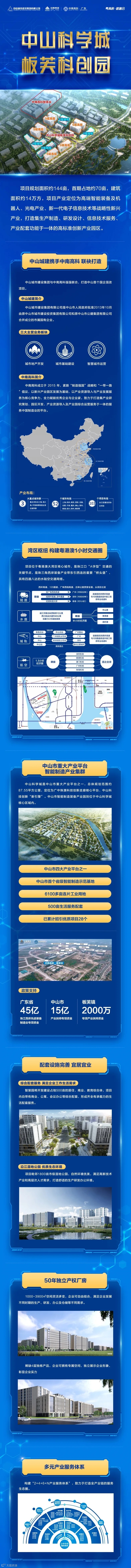 【开发商】:中南高科隶属于中南集团(中南建设证券代码:000961.SZ)中南集团在全国500强排名第94位。中国民营企业500强排名第19位。旗下中南高科专业做产业开发运营服务板块。目前中南高科旗下产业园区遍及全国42个城市,共规划打造64个园区。中山智荟港项目是中南高科旗下承接粤港澳大湾区产业转移的标杆项目园区。