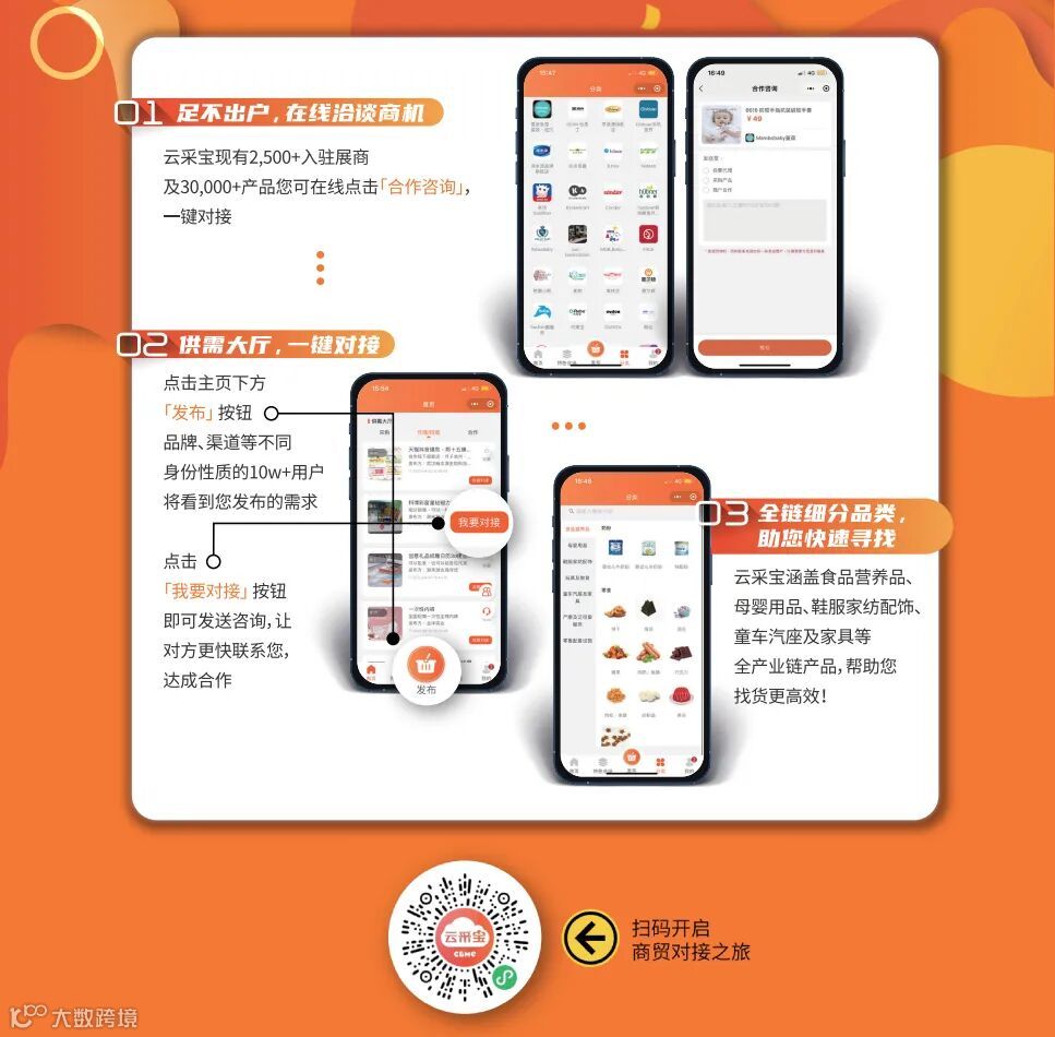 云采宝是CBME孕婴童展官方出品的线上商机对接小程序,目前已入驻2500+热门品牌和30000+精选优品,您可以在线与品牌/产品发起对接,目前累计对接询盘次数超过10w+!