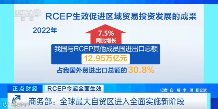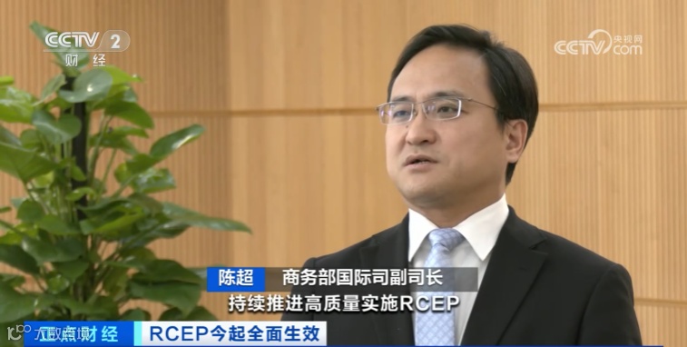 商务部国际司副司长 陈超:RCEP的全面生效将极大促进区域内货物、服务、资本、技术、人才和数据信息等资源要素的自由流动,推动逐步形成更加繁荣的区域一体化大市场。这有利于我国在更高起点上推进制度型开放,也利于地方、产业和企业拓展国际经贸合作新空间。