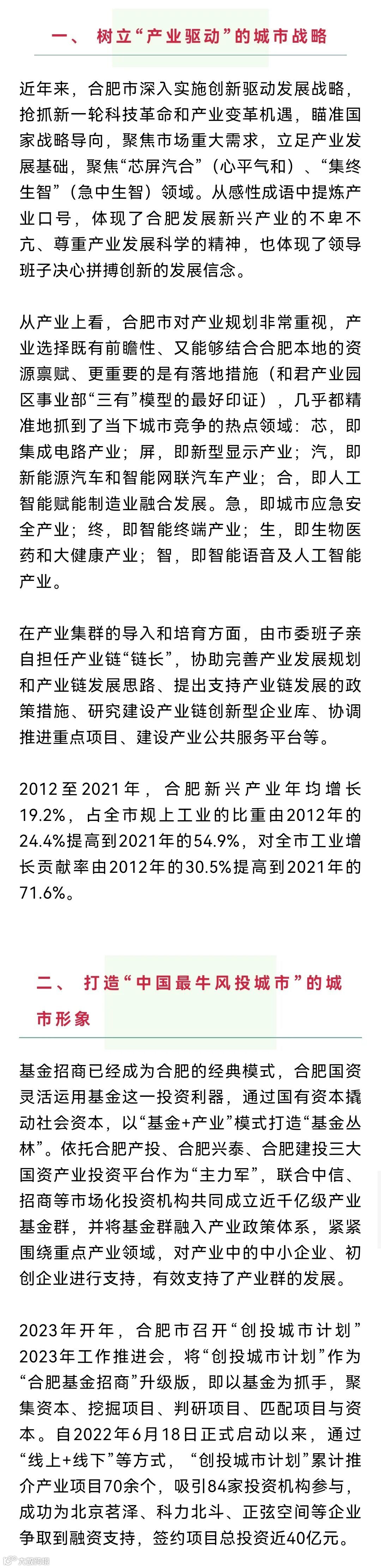 可以说,看得见的是运气,看不见的是合肥精准的产业定位和导入能力、产业基金创新发展模式、政府超前的眼光与魄力、产学研协同生态等因素共同作用的结果。
